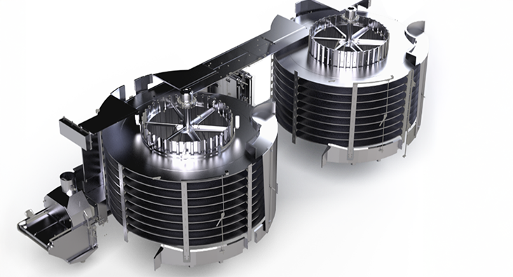 我们的螺旋输送机设计可在较小的占地面积内实现较长的烹饪时间,从而高效处理大量产品。有针对性的气流和可调节的工艺参数确保了整个烤箱的均匀传热,从而支持工业规模下可预测和可重复的结果–即使在空间有限的设备中也是如此。